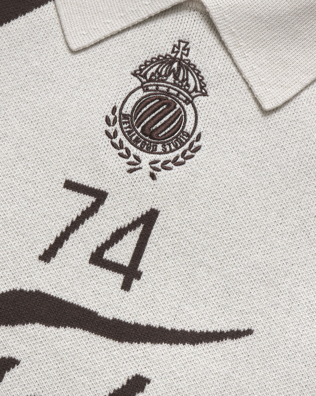 Strikket topp i 100% bomull med brodert crest og jacquard-detaljer. Oversized passform og et tydelig, teksturert uttrykk.